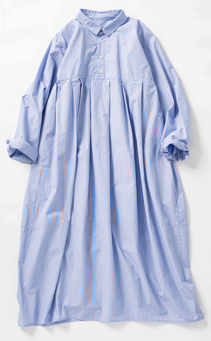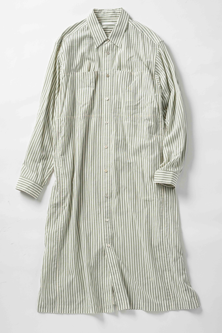 先シーズンからレディースもスタートさせた《イレニサ》のシャツワンピースは、美しいシルエットが目を引く。