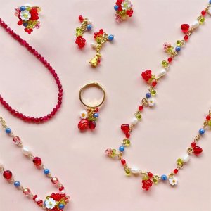 ネックレスや耳飾りは、とびきりガーリーなムードをまとっています。Tシャツなどのデイリーウエアに合わせるだけで、おしゃれ度がぐっとアップ。身につけるだけで、気分までハッピーになれるアイテムです。