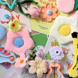 ふんわり温もりを感じるファブリックフラワーや、コロンとしたシルエットが愛らしいバッグ。色や柄、素材のセレクトひとつにも、作り手のセンスが光ります。思わずシリーズで揃えたくなる、キュートな佇まいです。