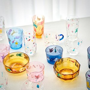 透明感のある絵付けが印象的なガラス作品。光を受けるたびに、よりいっそう美しく輝きます。まるで絵本の世界に迷い込んだような、心躍るハンドペイント。食卓に小さなときめきを添えてくれるアイテムです。