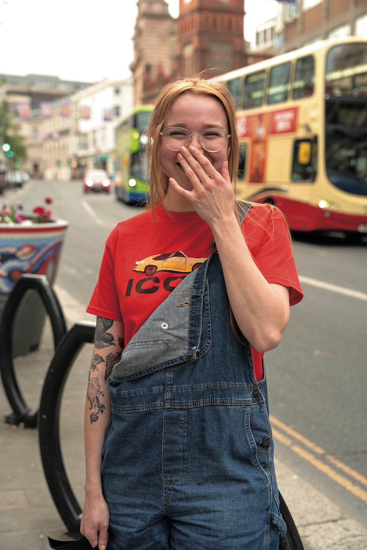 ちょっぴりシャイなAliceは、ボーイズライクな着こなしがお似合い。この日が初おろしというレトロなグラフィックTシャツと、18歳の頃から着ているお気に入りのオーバーオールがベストマッチ。