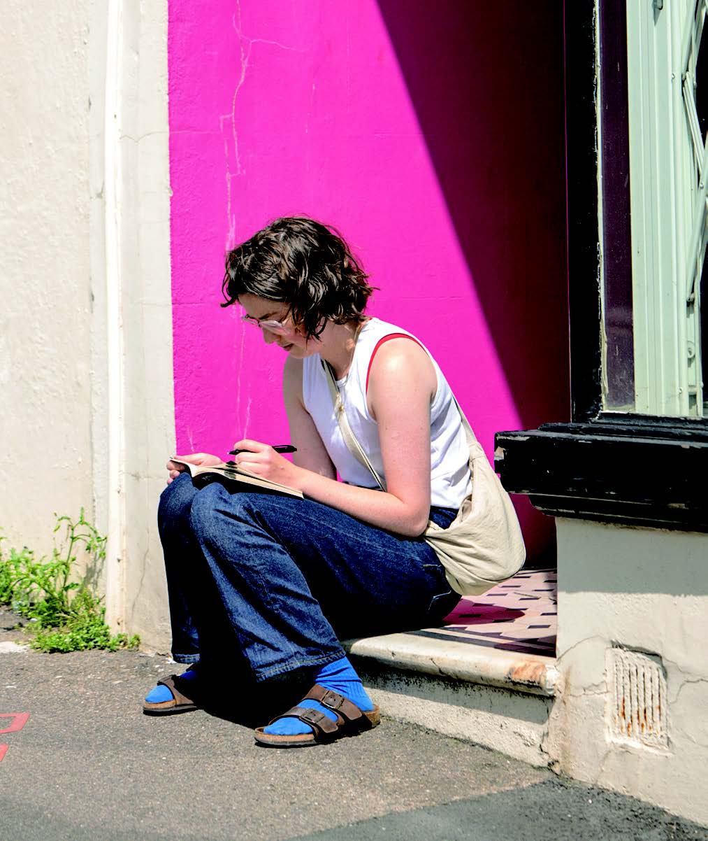 道端でなにやら真剣な表情の彼女。「何に熱中しているの? 」と声をかけると、「クロスワードパズルよ! 」と照れながら教えてくれた。アナログに時間をつぶす姿がなんだか素敵。