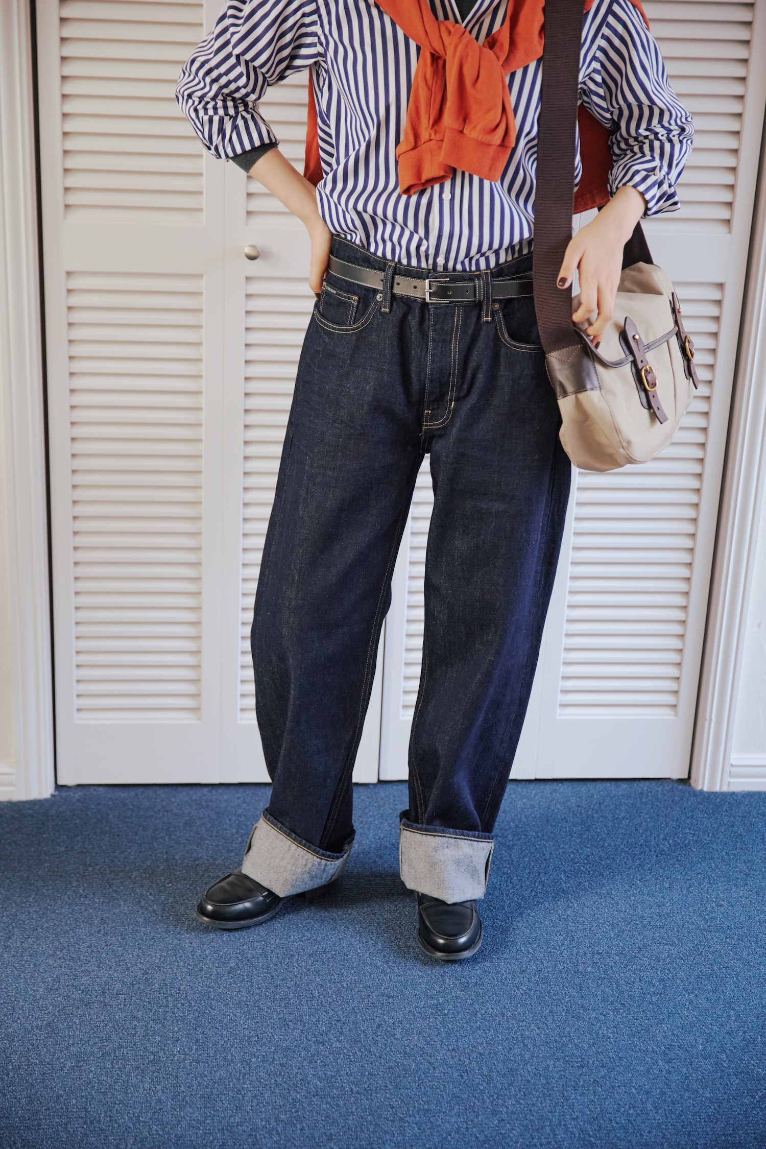 コーディネートを味わい深く仕上げてくれる濃紺デニムは、ファッジスタイルの大定番。着まわし力の高さは言わずもがな。この秋は、ほんのりトラッドに楽しんでみるのが気分です。「レギュラー」「スリム」「ワイド」、シルエットを変えるだけで、オンクルっぽくも、レディライクにも、ボーイにも。今日はどんな気分で穿く?