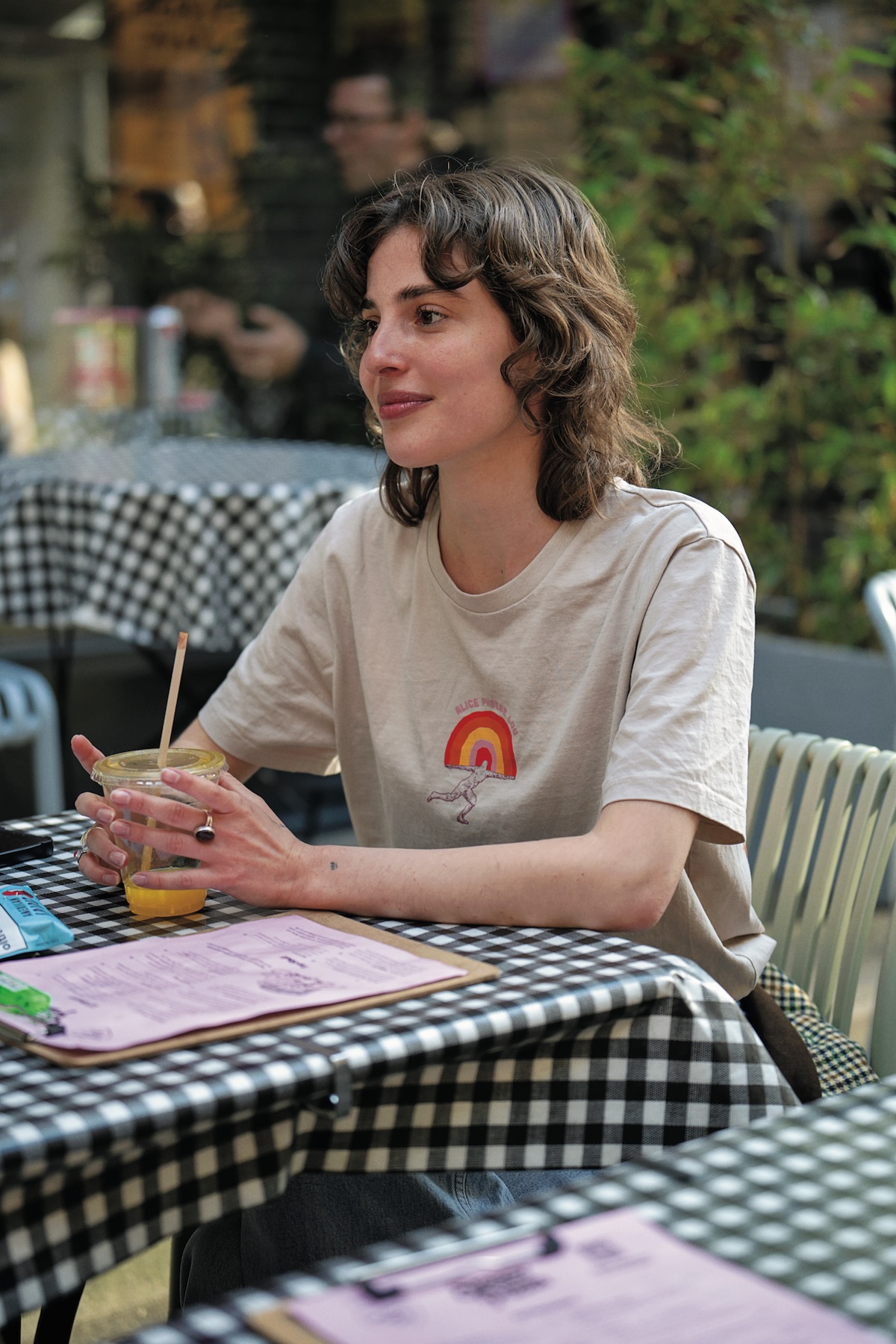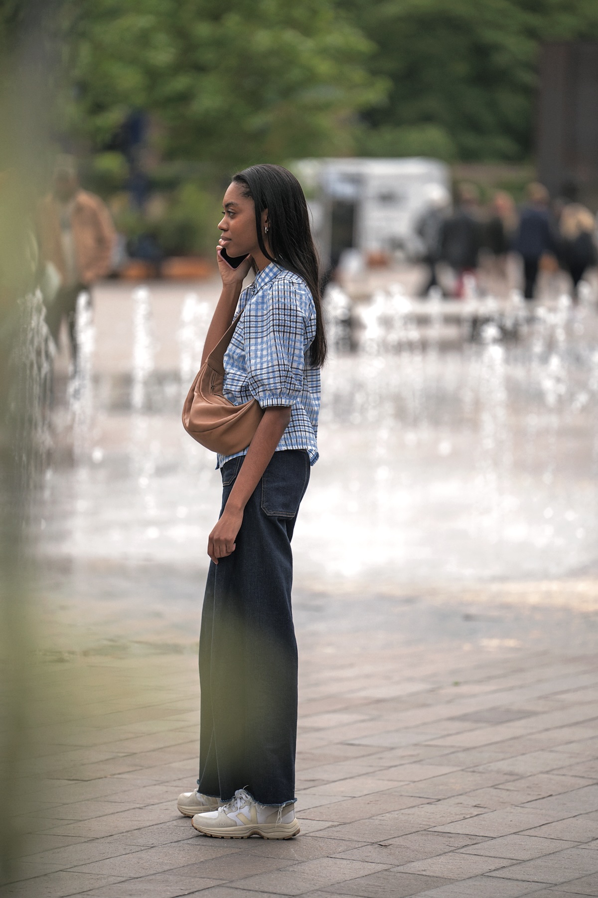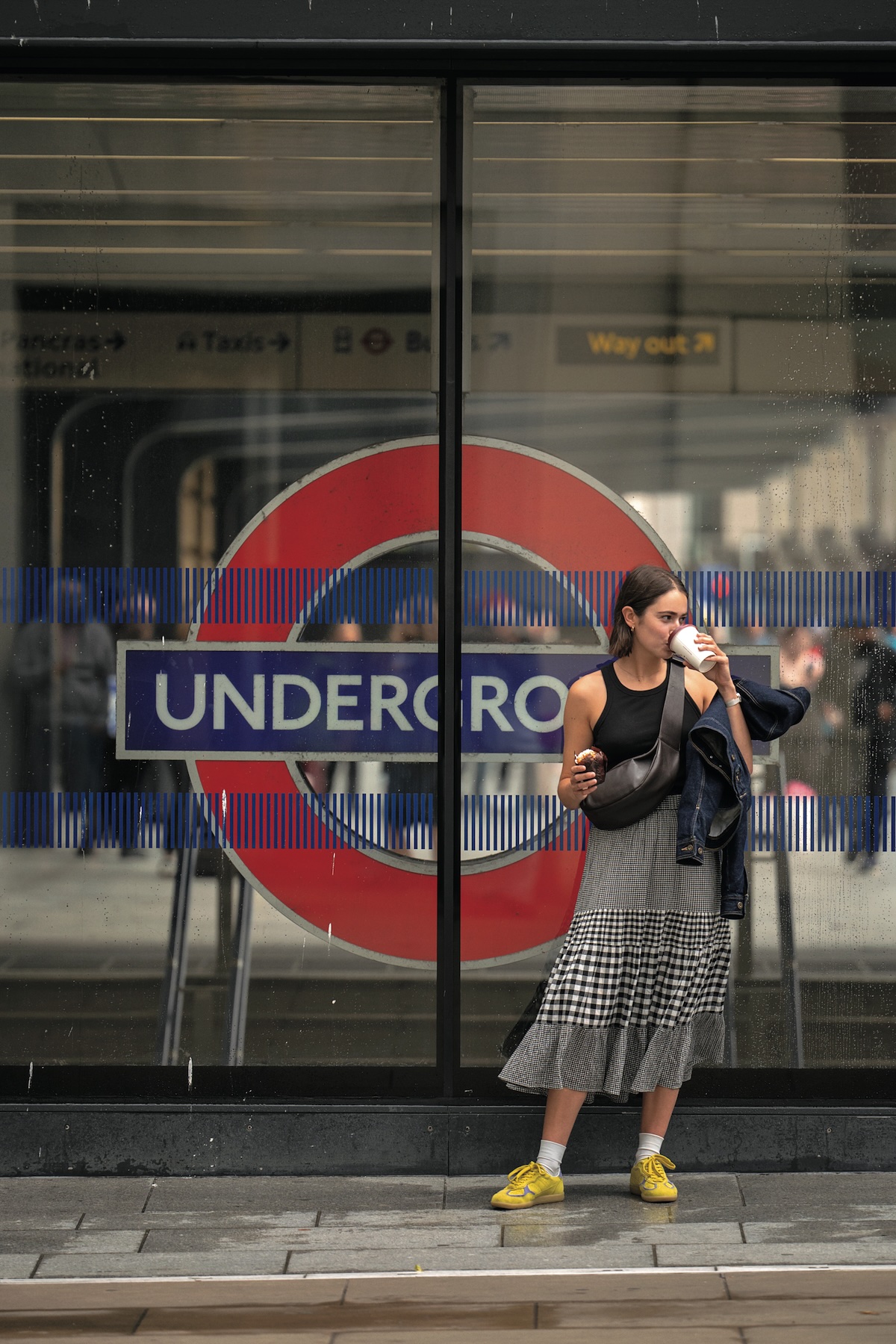 学生や観光客が多く行き交うキングス・クロス駅で、ひと際目を引くいつもお洒落なあの子。毎朝、アンダーグラウンド(地下鉄)の入り口にいて、マフィンとコーヒーでモーニングをしている。今日はヘルシーなタンクトップと、リズミカルなギンガムチェックのスカートでサマームード全開。足元にはヨーロッパで人気沸騰中の《アロハズ》のイエロースニーカー!ポップなムードが加わって、彼女のスタイルをより印象的に彩っていた。
