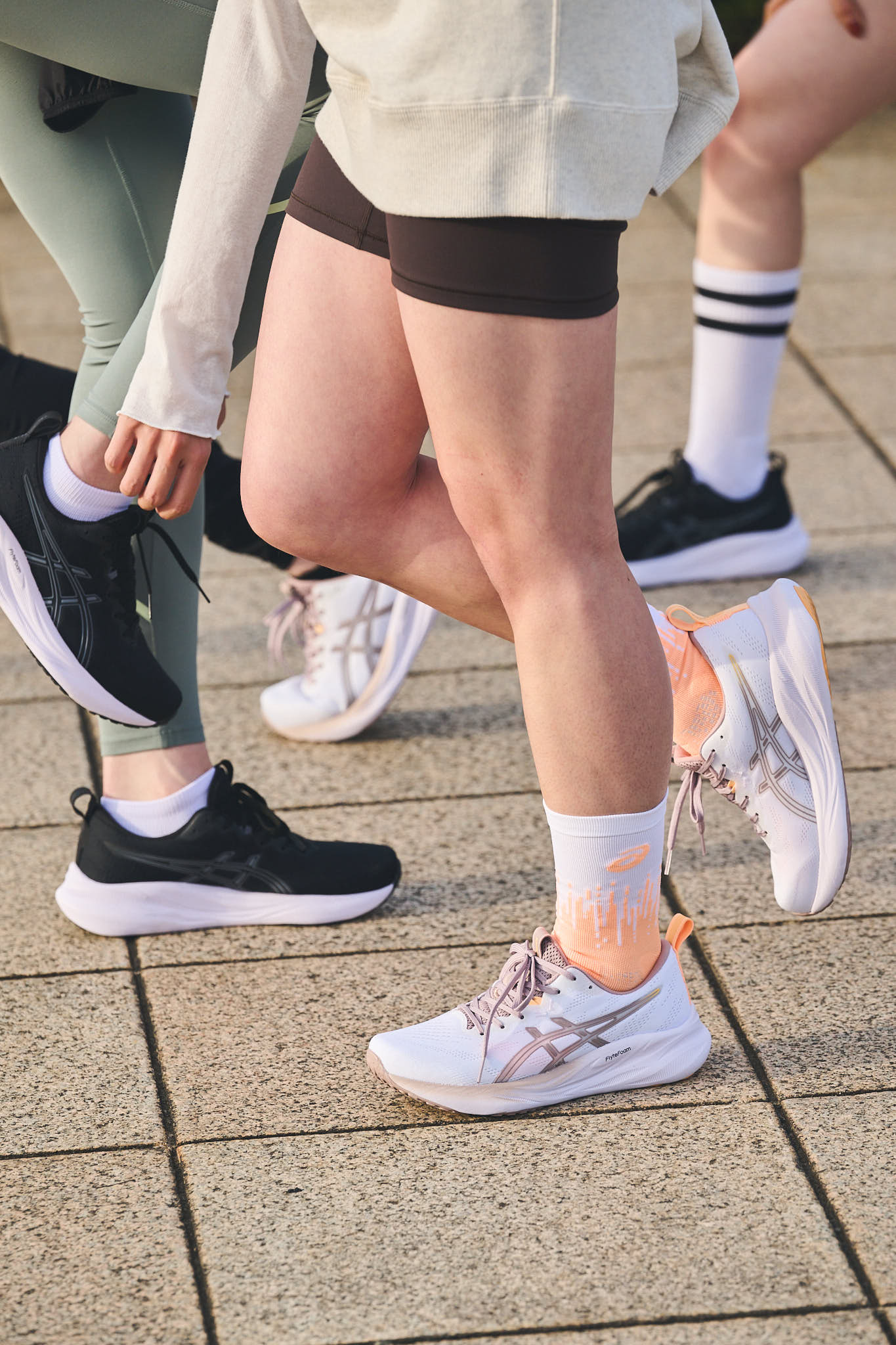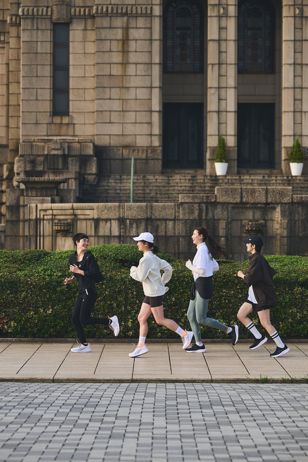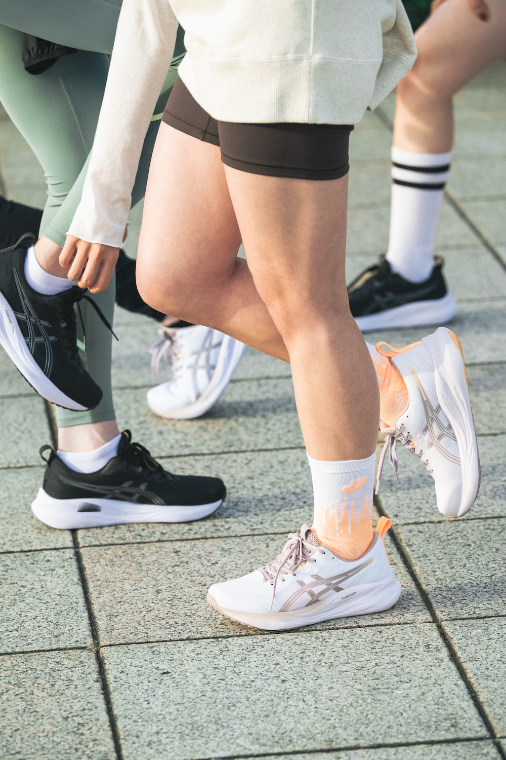 ランニングを始めたいと話していた璃子ちゃんとRANちゃんを誘って、4人で集合!「クッション性がありながら、安定感もあって走りやすい」と、GEL-PULSE 16の走り心地を確かめながらゆるくラン。