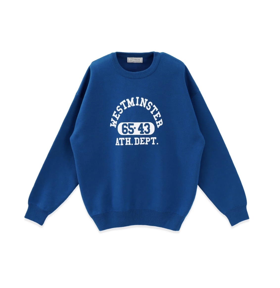 ウェストミンスターの地名をカレッジ風にプリント。ニットならではのほどよい厚みと伸縮性で着心地も抜群です。着映えする鮮やかなブルーで秋冬コーデの主役に!