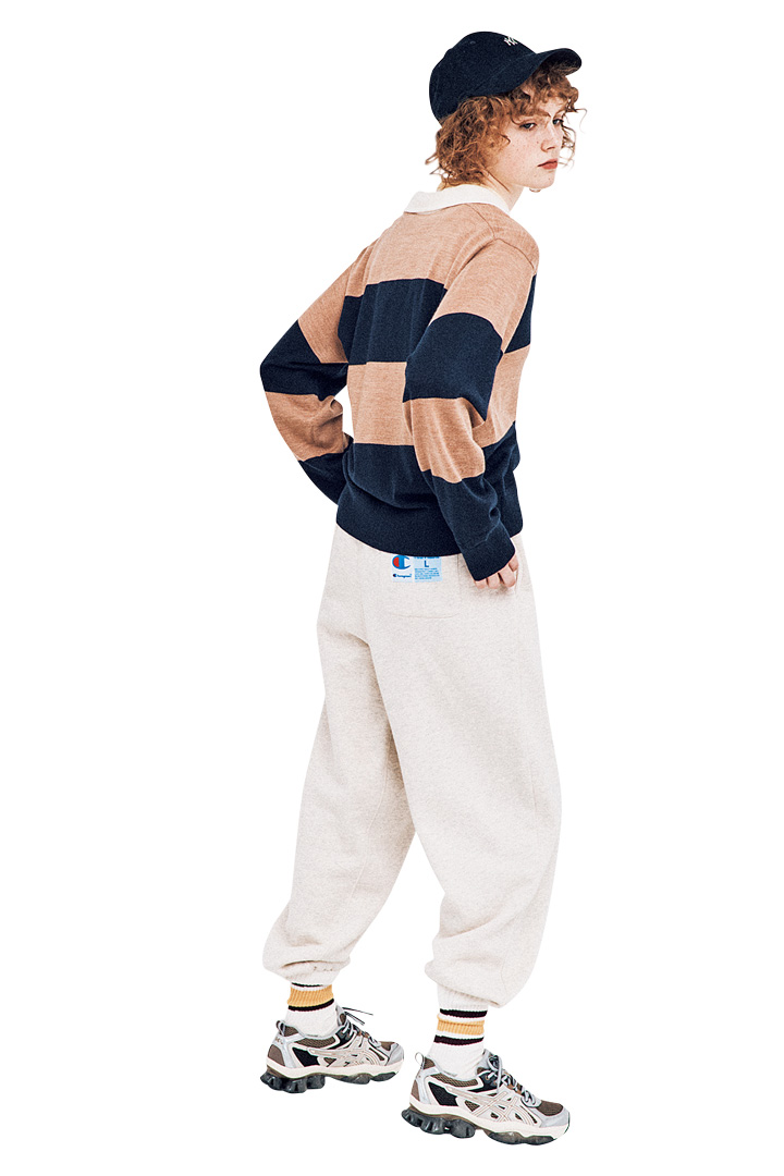 ソックス[オンライン限定]¥1290/Gap(ギャップ)、スニーカー¥33000/ASICS(アシックスジャパン カスタマーサポート部)、ポロセーター¥31900/Brooks Brothers(ブルックス ブラザーズ ジャパン)、パンツ¥12980/Champion(ヘインズブランズ ジャパン カスタマーセンター)、キャップ¥5280/New Era × FREAK’SSTORE(フリークス ストア渋谷)