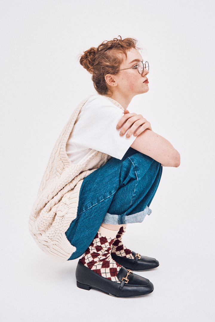 Tシャツとデニムパンツに無地ソックスとローファー。スタンダードはもちろん大好物だけれど、少し気分を変えてみたい! そんな日もあるよね。秋の風を感じた今日は、ケーブルニットベストを重ねてアーガイルのソックスをプラス。 スパイスの加減がちょうどいい。