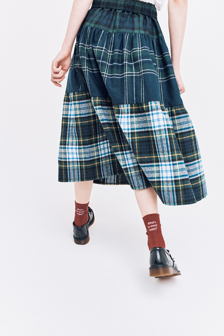 ソックス¥1210/靴下屋(タビオ)、シューズ¥28600/Dr. Martens(ドクターマーチン・エアウエア ジャパン)、スカート¥28600/O’NEILOF DUBLIN(セムインターナショナル)