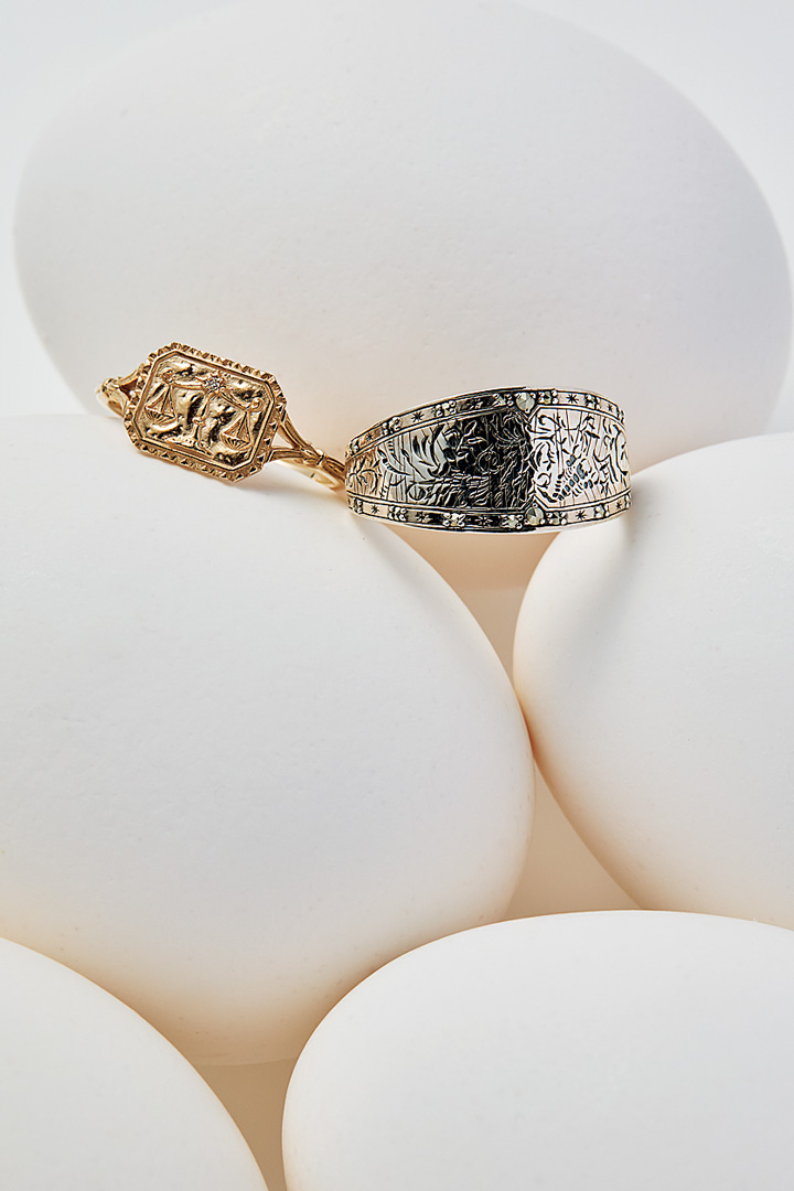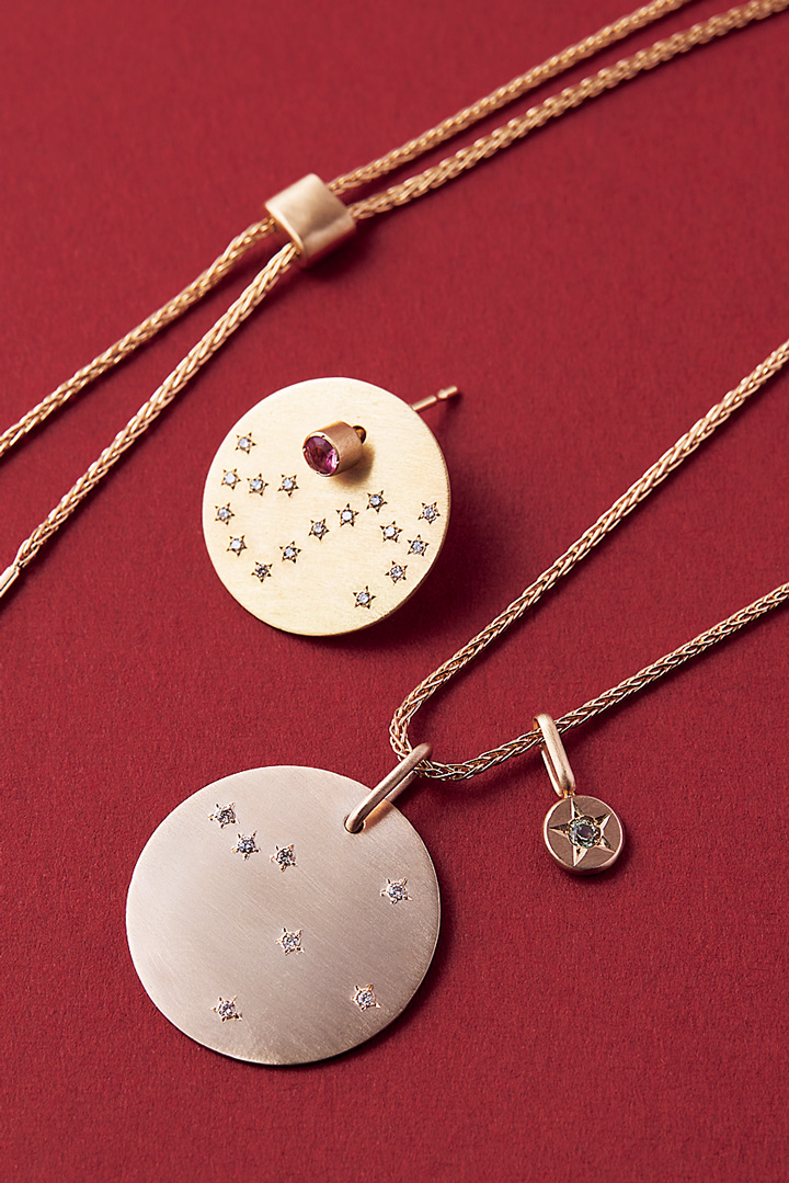 パーフェクトリー・インパーフェクトをコンセプトとするユニセックスジュエリーブランド。12星座を表す「ゾディアック」シリーズは、感覚的で芸術的なデザインが魅力。左から、乙女座、双子座、山羊座を表現。