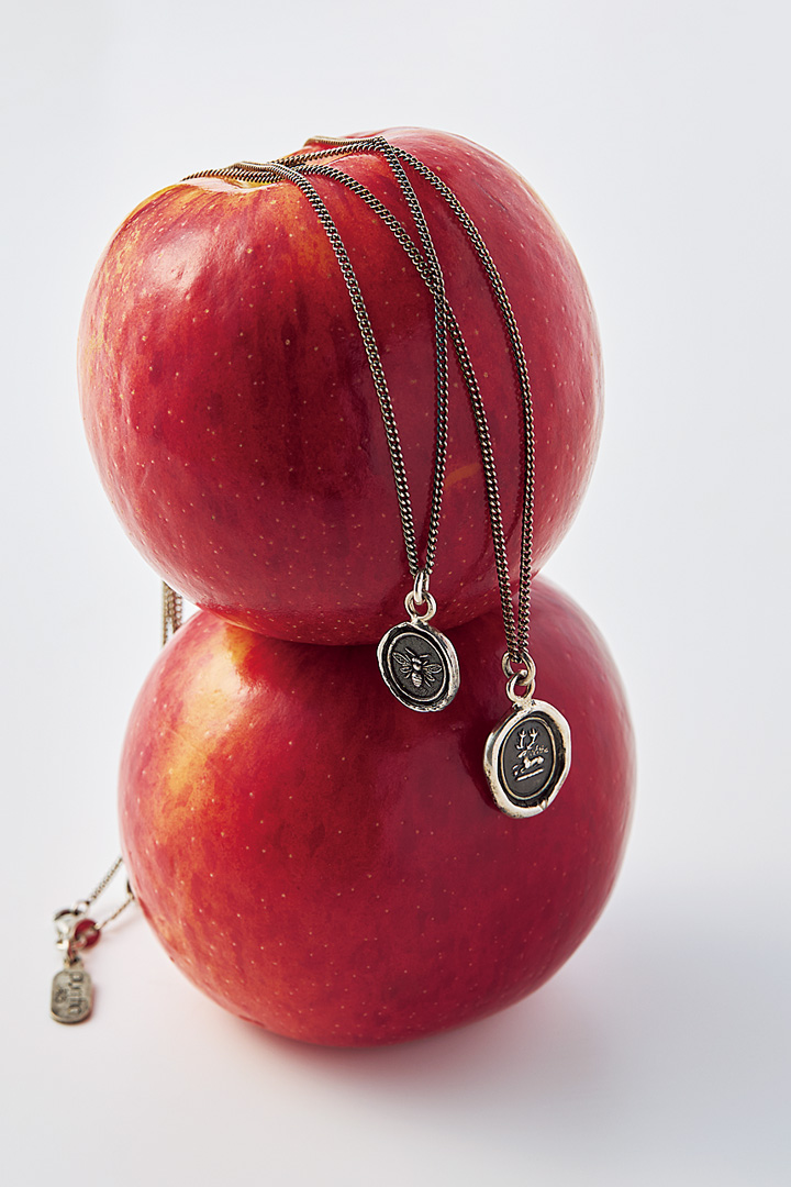 カナダ発の《ピーラ》のネックレスは、リサイクルメタルを100%使用したハンドメイド。ミツバチは勤勉さを表すので仕事や勉強を頑張りたい日に、牡鹿と星のモチーフは心を落ち着かせたい日に。