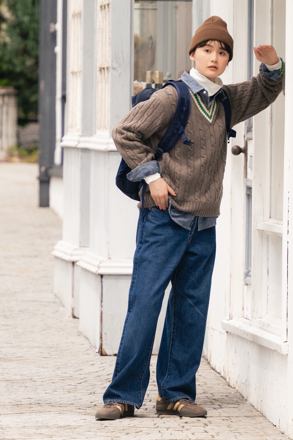 イギリスの学生たちがスポーツウエアとして着ていたクリケットセーターを起源に持つ「チルデンセーター」アイビースタイルを象徴するアイテムとして愛されてきたその一枚を今ぽく着こなすなら、デニムでカジュアルダウンして。ベーシックなブルーデニムを合わせれば、プレッピームードにほどよく抜け感を加えた“モダンプレッピー”の完成です。