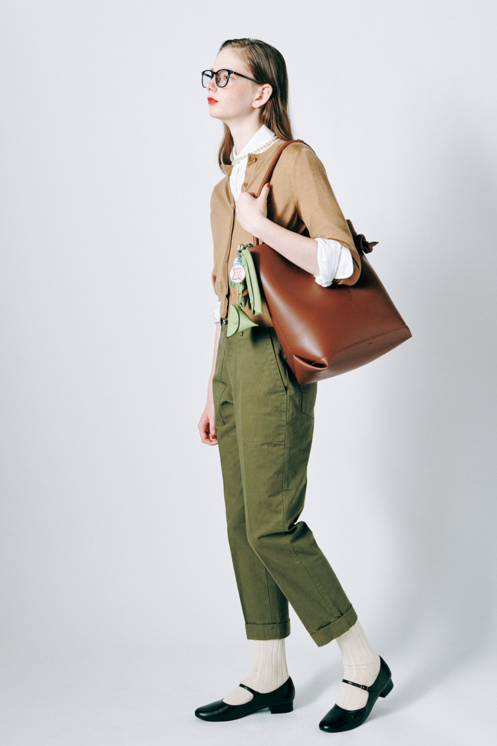 エフォートレスなデザインに《ヴァジック》のシグネチャーであるノット(結び目のデザイン)がユニークな表情を醸し出す「パティ」。マグネット開閉で出し入れスムーズ、縦型で中身が整理しやすいのも嬉しいポイント。チャームの重ね付けで自分らしさも忘れずに。