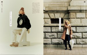 今回は「ネコのパレット」(P50〜)と連動して、三毛猫みたいなやさしい白と黒と茶、サバトラのようなクールな黒とグレー、茶トラのあったかい白と茶など、ネコをお手本に3色以内で洒落てる、冬の色合わせをお届け。ボリュームのあるコートの着こなしや、ニットやベストなど、これからの季節に参考になるコーディネートは必見です。