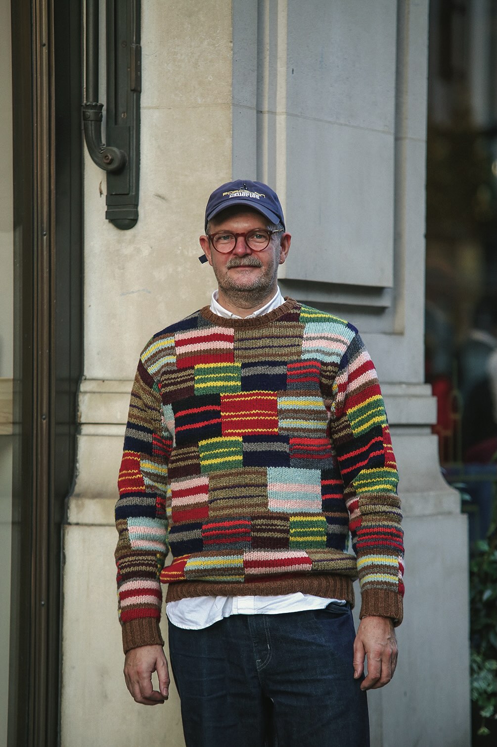 デザイナーの Darrenさんはジャパニーズブランドが大好き!仕立てのいいデニムは《ユニクロ》、そして合わせたっトップスはなんと《ビームス》と《MUJI》なんです。色遣いとサイズ感でおしゃれな着こなしへアップデート。