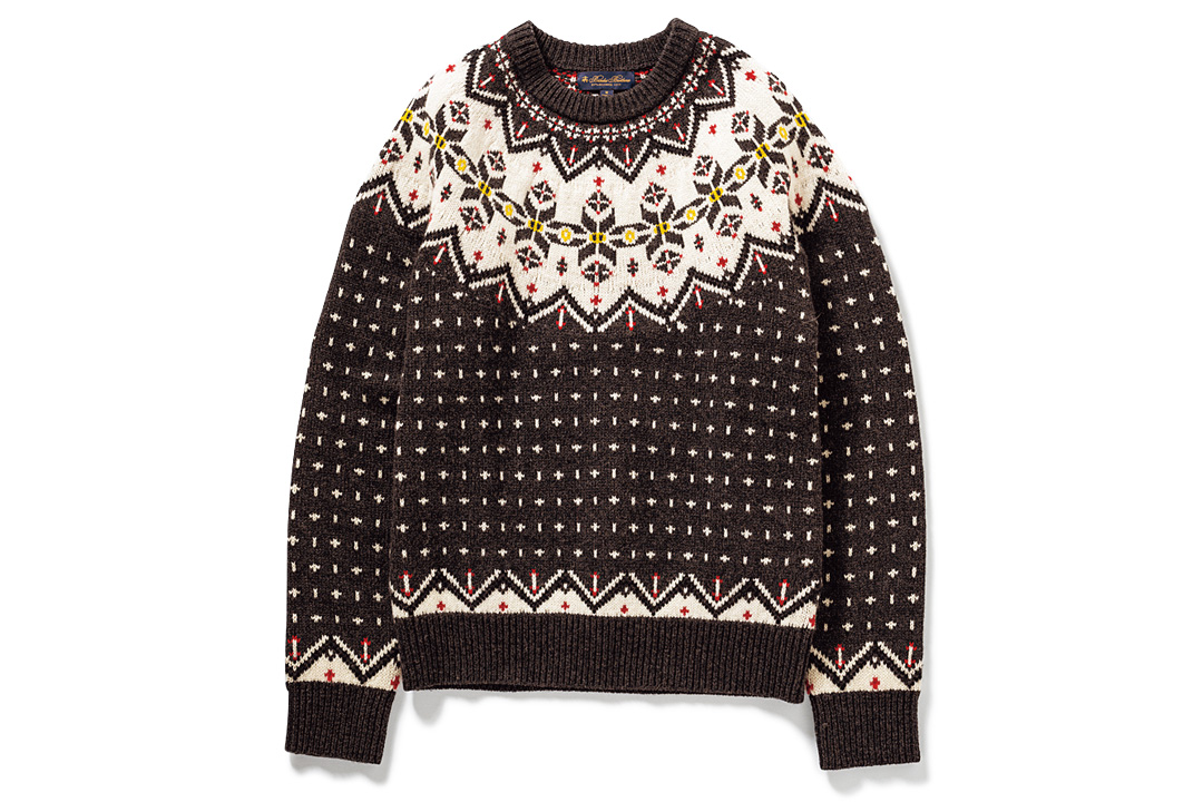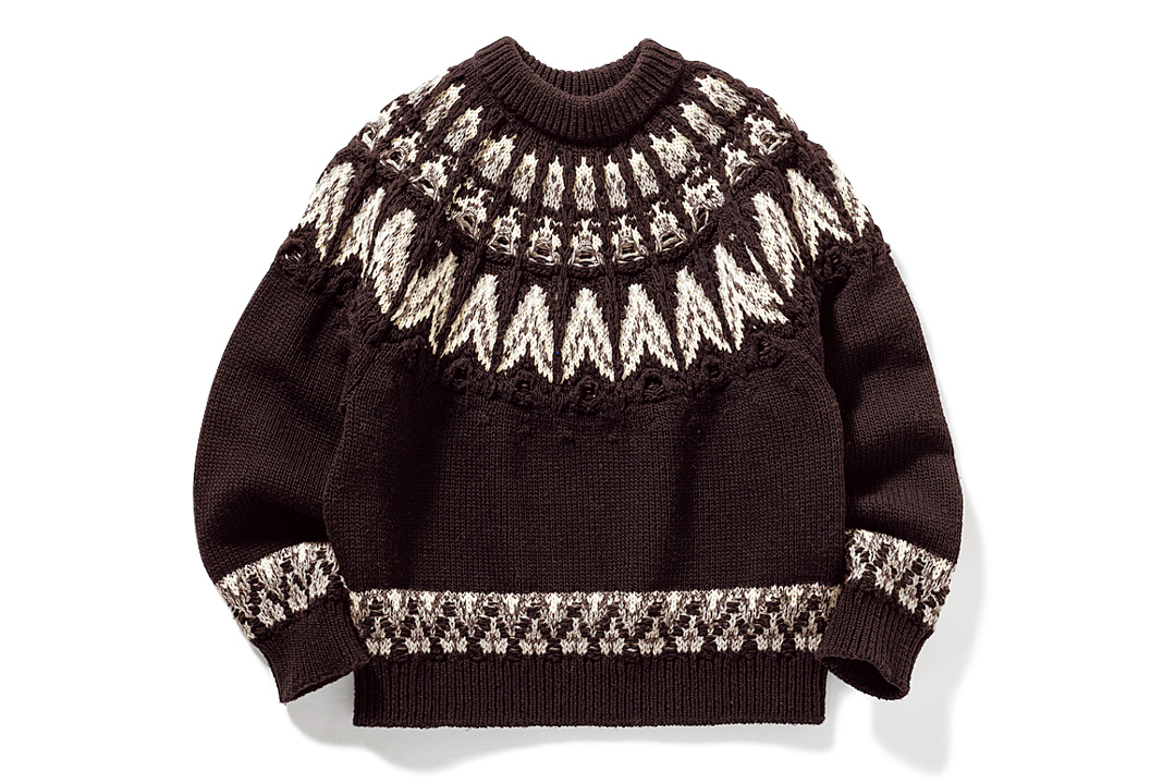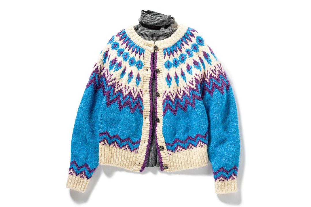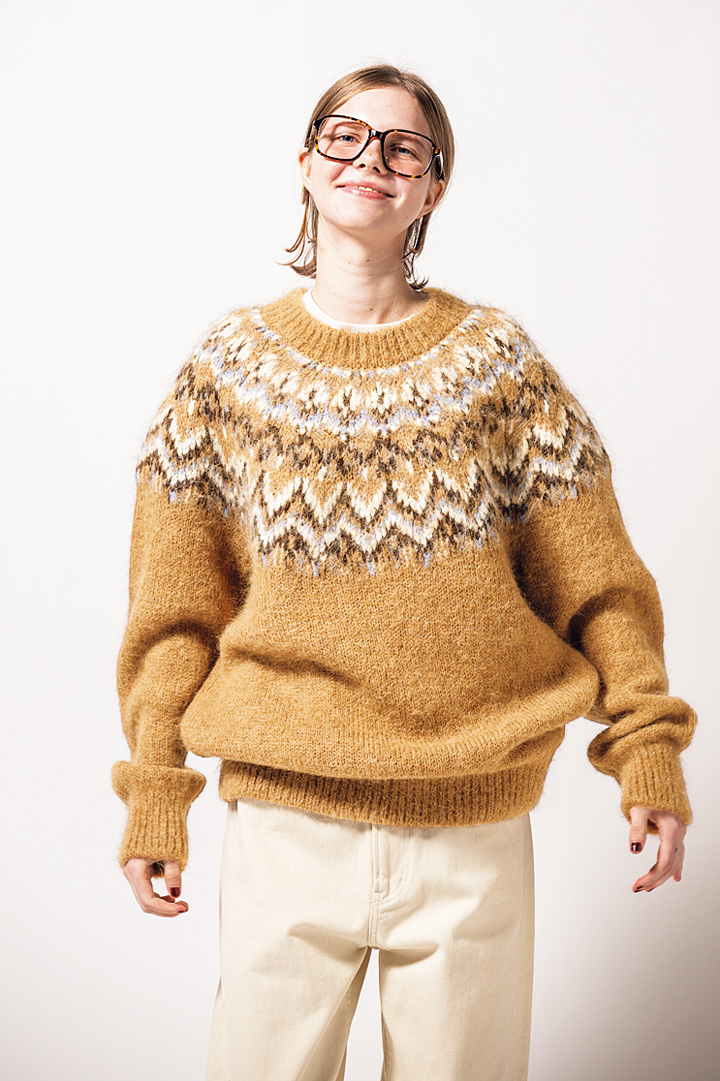 山形県の老舗ニットメーカー〈米富繊維〉のファクトリーブランド《コーヘン》のアイコニックピースであるノルディックセーター。今季は、ソフトで軽く、弾力性に優れた上質なフレンチメリノウールを使用。¥44000/COOHEM(ヨネトミ ストア)