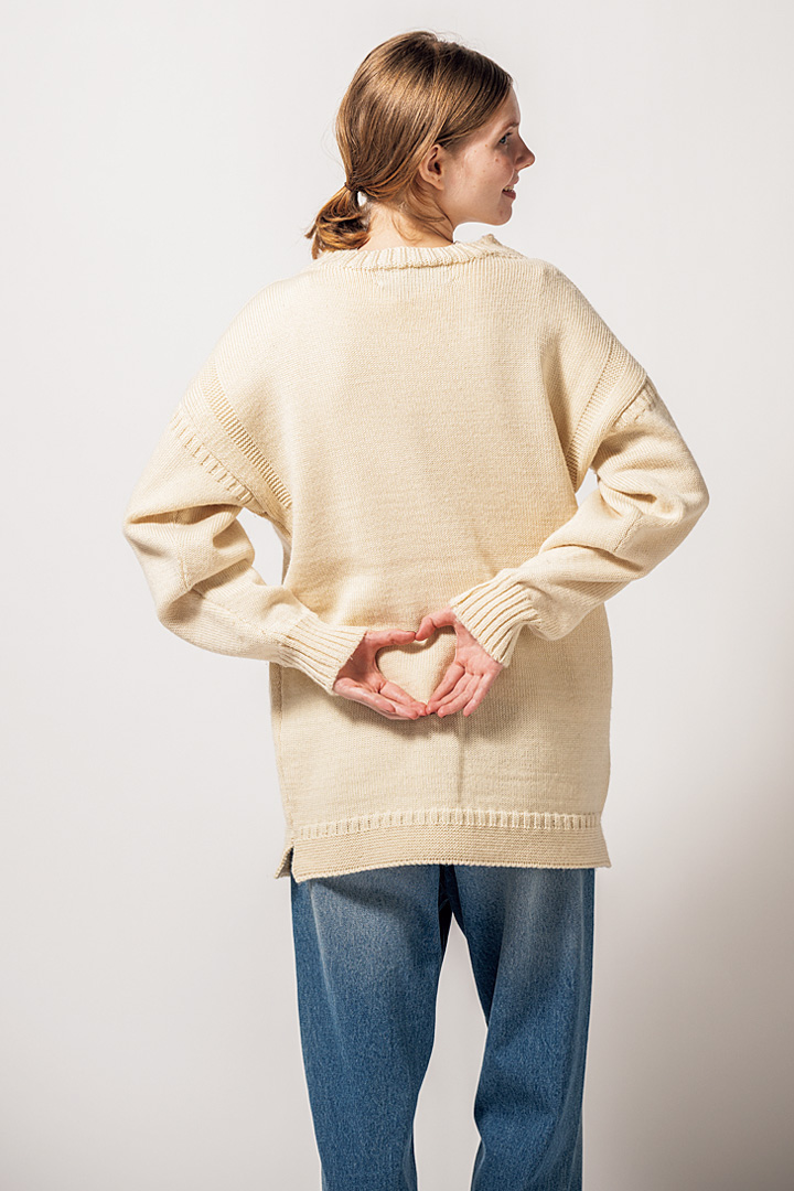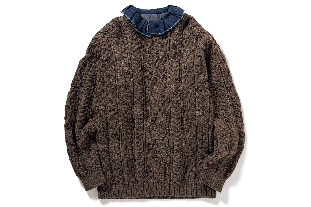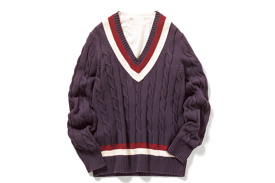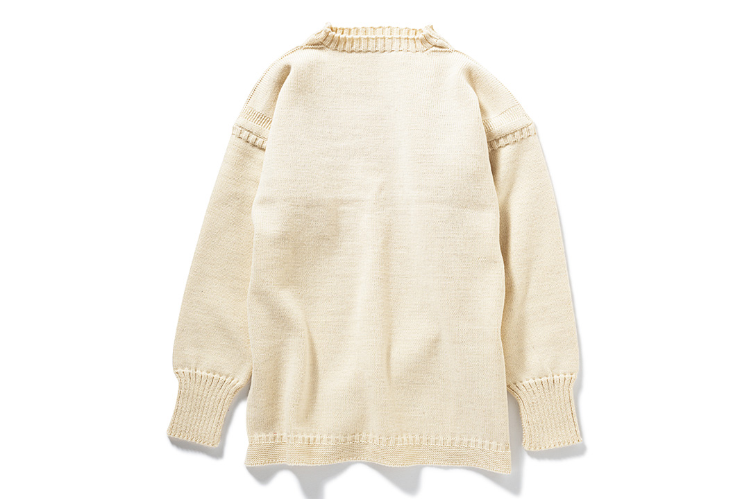 1964年にイギリスのガンジー諸島で設立され、伝統的なガンジーセーターだけをつくり続けているメーカー《ル トリコチュール》のもの。¥44000/Le Tricoteur(ビショップ)