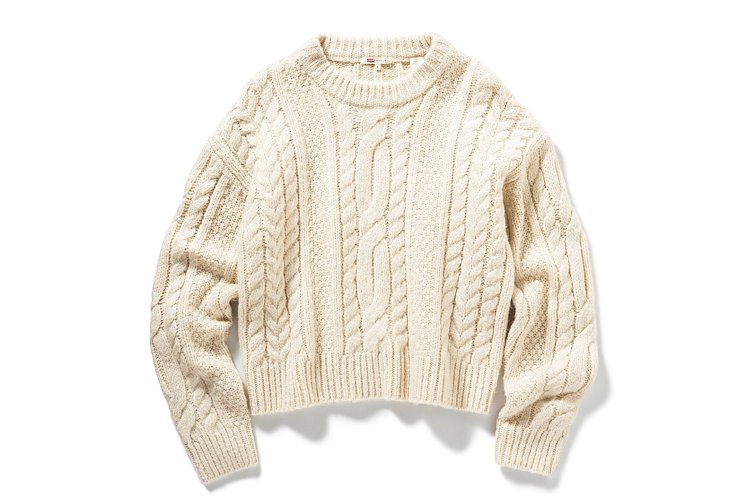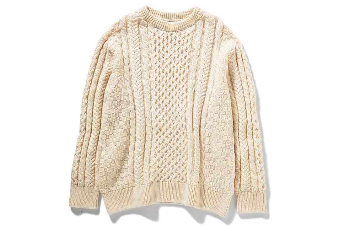 生成りの糸で、ケーブル、ハニカムなどの模様を描いたオーソドックスなアランセーター。¥30800/L.L.Bean (エル・エル・ビーン カスタマーサービスセンター)