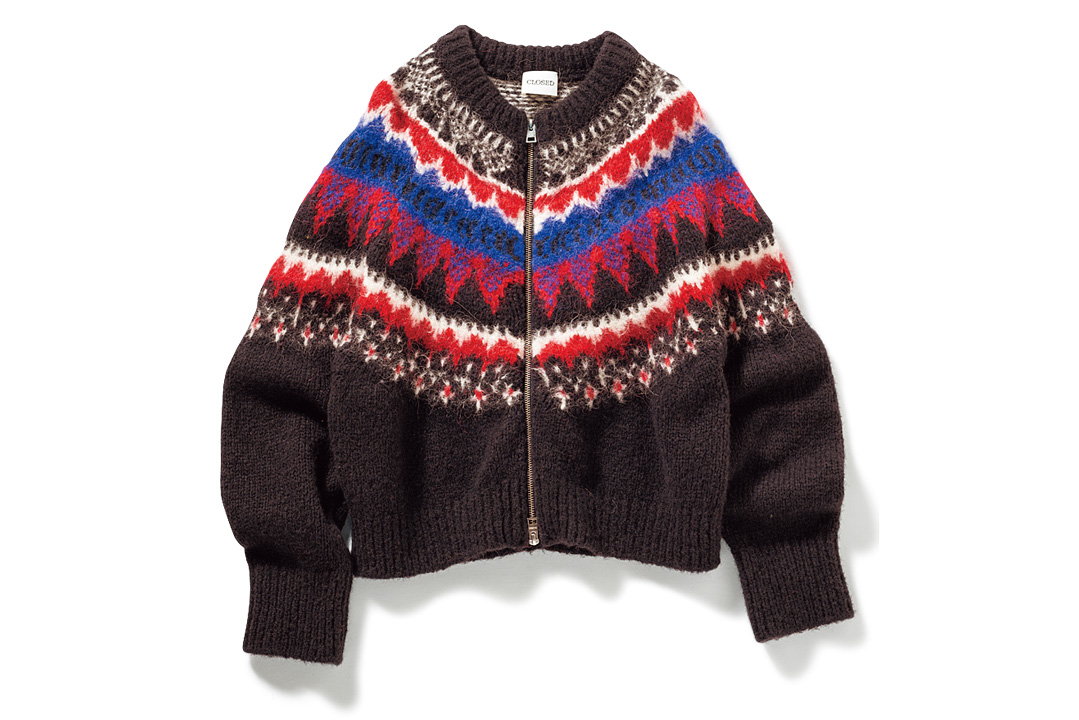 黒、白、赤、青のパキッとしたコントラストが目を引くジップ付きセーター。デニムパンツと一緒にワン・ツーで着こなすだけでこなれ感を演出できる。¥64900/CLOSED(トヨダトレーディング プレスルーム)