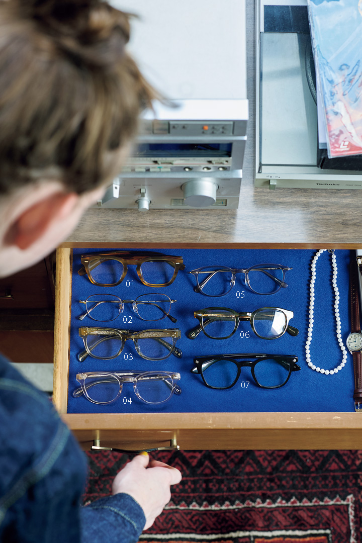 今日のデニムスタイルに合うメガネは……。 01_ミニマルなフォルムを突き詰めた「オンリーコレクション」から、洒落たべっ甲柄の「N.03」をピックアップ。¥62810/Oliver Peoples(ルックスオティカジャパン カスタマーサービス) 02_シックなメタルの「SF-6008M」。航空宇宙産業などでも使われている、タフなベータチタンを使用。[レンズ込み価格]¥20980/smart fit Classic Design(メガネの愛眼 お客様相談室) 03_オリーブグリーンのクリアフレームと、重厚感のあるテンプルが絶妙にマッチングした「アフトン」。¥54780/OliverPeoples(ルックスオティカジャパン カスタマーサービス) 04_ベーシックな形だからこそ、アイスピンクという選択肢もあり。案外スッと顔に馴染んでくれる。¥50380/Oliver Peoples(ルックスオティカジャパン カスタマーサービス) 05_“ 都会的なクラシック”をコンセプトに掲げる《リトン》のメガネはすっきりシェイプ。かけていることを忘れてしまうほどの軽さが自慢。[レンズ込み価格]¥19980/reton(メガネの愛眼 お客様相談室) 06_N.Y.の老舗《モスコット》のアイコンフレーム「レムトッシュ」。30種類以上の豊富なカラー展開で、自分好みの1本がきっと見つかる。¥49500/MOSCOT(モスコット トウキョウ) 07_現存する最古のメガネメーカーと言われる《アメリカン オプティカル》。半世紀以上愛され続ける「タイムス」はハンサムな面持ちで、アメカジとも相性ぴったり。[フレーム価格]¥49500/AMERICAN OPTICAL(メイデン・カンパニー)、ネックレス¥69300/MARIHA(マリハ)