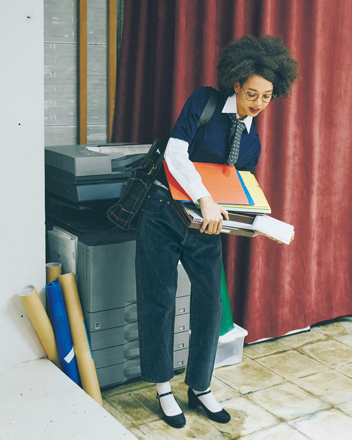 “上品に着る”というひと工夫で、いつものカジュアルなデニムがオフィス仕様に変わります。ポイントは、濃紺やブラックなどの落ち着いたカラーを選ぶことと、レディなデザインや素材、小物合わせを意識すること!さあ、今日も大好きなデニムを着て出勤です。
