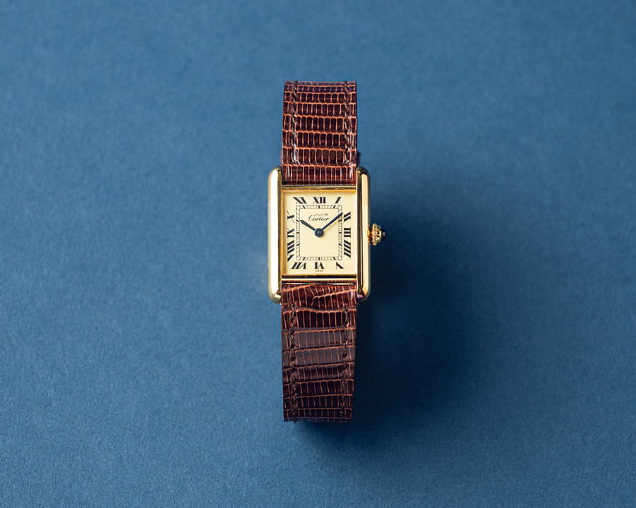 スマートフォンや携帯電話だけではなく、上質な腕時計で時間を確認するのがグッドレディ。《カルティエ》の名品「タンク」なら、その所作さえもきっと美しく見えるはず。ヴィンテージならではの深い味わいを楽しむのも粋でしょ。