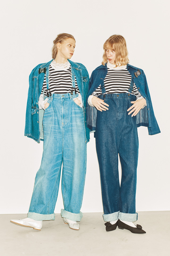 LEFT_デニムジャケット¥39600/SOMETHING(エドウイン・カスタマーサービス)、オーバーオール¥52800/RHODOLIRION(ネペンテス ウーマン トウキョウ)、Tシャツ¥13200/agnès b(. アニエスベー)、シャツ¥39600/Bilitisdix-sept ans(ビリティス)、ブローチ¥15400/ABISTE(アビステ)、シューズ¥18920/tsumori chisato WALK(モーダ・クレア)、ソックス/スタイリスト私物RIGHT_デニムジャケット¥35200/ANATOMICA(アナトミカ 東京)、オーバーオール¥28600/Le Mino(r ゲストリスト)、ロングTシャツ¥14300/agnès b(. アニエスベー)、シャツ¥59400/TOUJOURS(トゥジュー 代官山ストア)、ブローチ¥15400/ABISTE(アビステ)、シューズ¥35200/RHODOLIRION(ネペンテス ウーマン トウキョウ)、ソックス/スタイリスト私物