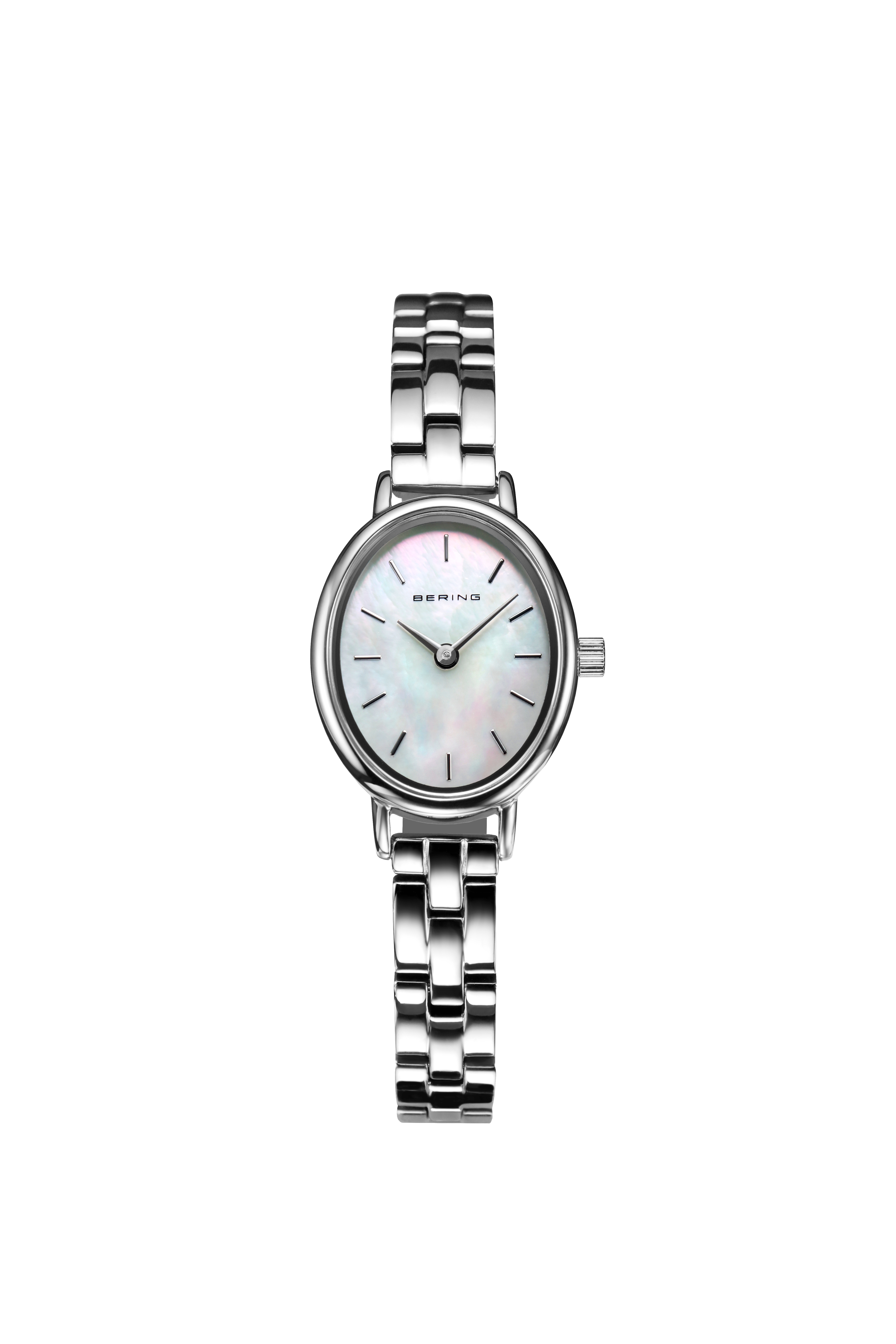 バーデザインのインデックスと針で構成されたミニマルな「クラシックスカンジナビアン」シリーズに、パールのフェイスが目を引く新作が仲間入り。20mmの小ぶりなケースに落ち着いた輝きが宿る、上品な仕上がりにうっとり。