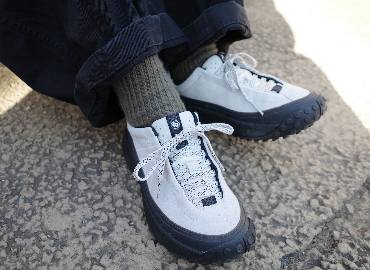 洗練されたミニマルなデザインでシティでもアウトドアでも合わせやすい、KS MINO 。シンプルながらスウェードの上質な素材感やシューレースに施された細やかな模様など、履くだけで足元をアップデートしてくれるおしゃれな一足。歩く時の衝撃を和らげてくれる厚底のEVAミッドソールで、一日中履いても疲れにくい履き心地。シューレースを調整しやすいようにホールが内側に配されているなど、ディティールにもこだわりが詰まっています。