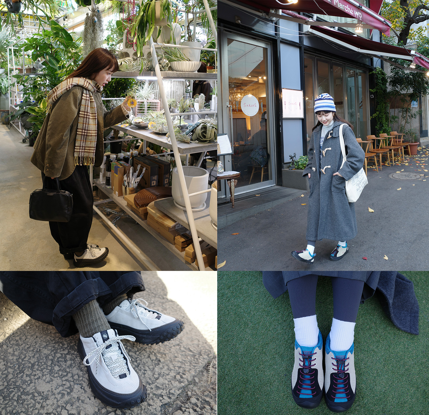 鮮やかなブルーのカラーリングが印象的なJASPER “ROCKS” SP(ジャスパー ロックス エスピー)を主役に、相性の良いグレーのアイテムを組み合わせ。ダッフルコートやプリーツスカートなどのスクールガール風のコーディネートに、プレイフルなスニーカーで足元をハズすことでこなれ感がUP!