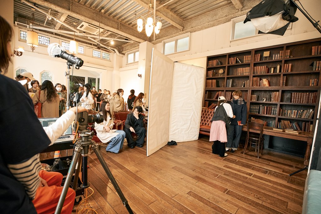 撮影体験に参加しなかったとしても、会場は普段スタジオとして使われているだけあり、どこを切り取っても絵になる素敵な空間でした。ミラー越しにヨーロッパのような街並みを写して。