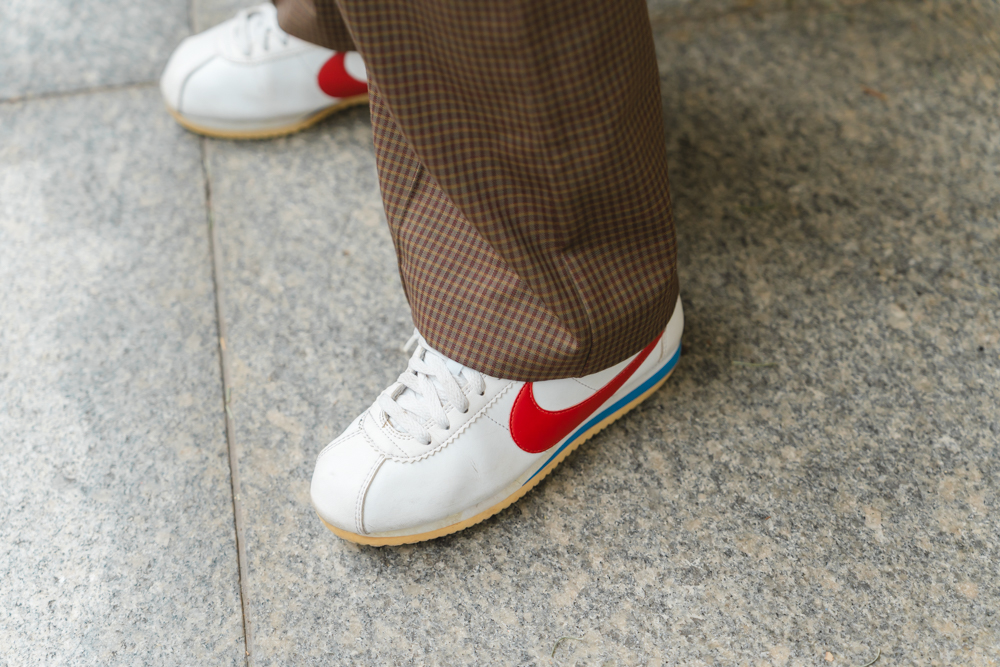 足元にはクラシックな《NIKE》のCortezを合わせ、心地よい抜け感をプラスしました。サイドの赤いナイキマークが、キャップやインナーの暖色系と密かにリンクしているのも、おしゃれ心をくすぐるポイントです。素材と色のリズムを楽しんでいるような、センスの光る冬のスタイルです。