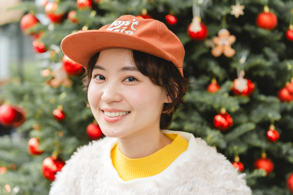 アウターの中からのぞかせたのは、最近迎え入れたというクリスマスらしさが感じられる古着の星柄ニットです。クリスマスシーズンならではの高揚感を高めてくれる特別な一着。もともと好きだった古着への熱が再び高まり、最近は阿佐ヶ谷や高円寺のショップを巡っているのだそう。そんな個性豊かな柄ニットも、白のボトムを合わせることで、軽やかで洗練された印象に。