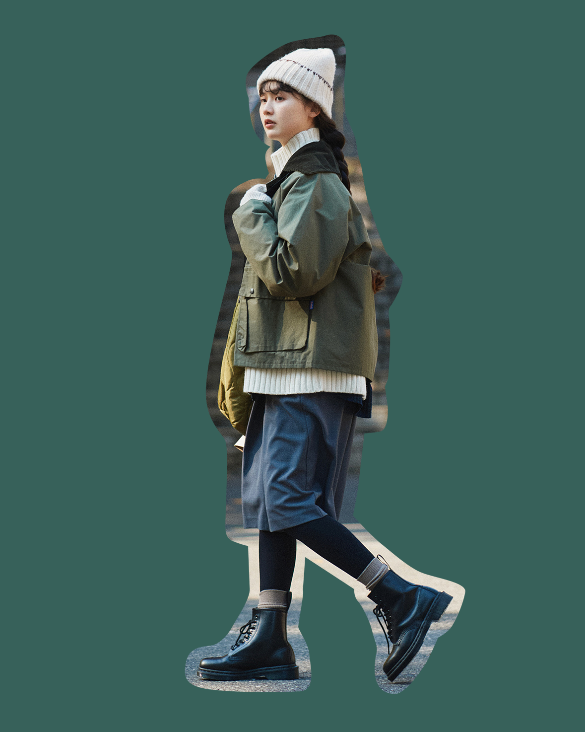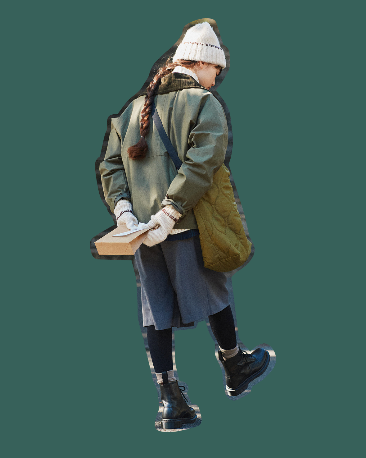 無彩色のシンプルな装いなのになぜか目を引く。その理由は、ビーニーとミトンのセット使いにあり!《フリークス ストア》で見つけた、配色ステッチが効いたデザインが、さりげないアクセントに。あったか小物を上手に組み合わせて防寒を楽しむスタイルは、マンネリしがちな冬のお洒落のヒントになること間違いなし。