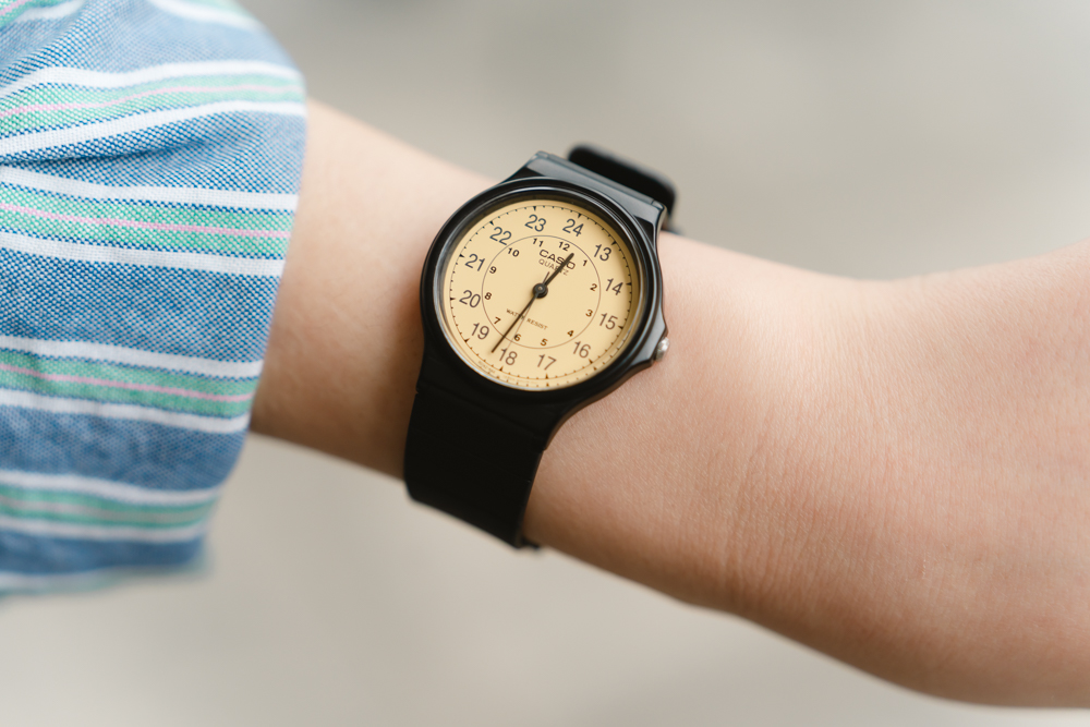 手元には、「時刻の見やすさ」が魅力の《CASIO》のミニマルウォッチ。実用性とレトロな可愛さを兼ね備えた、センスを感じるセレクトです。《UNIQLO》のデニムでシンプルに引き算をしつつ、小物の色をリンクさせるなど細やかな配慮が光るコーディネートでした。