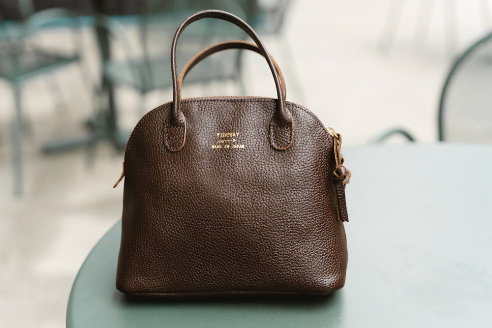 足元には《HARUTA》のダークブラウンのスポックシューズをセレクト。赤みを帯びたブラウンの色合いが、装いに「良い味」を添える絶妙なスパイスに。さらに、シャツの青緑に合わせたグリーンの靴下や、靴と色味を揃えた《TIDEWAY》の茶色のバッグなど、主役のマフラーを軸に、色をバランスよく散りばめています。