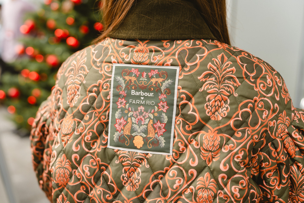 アーティーな柄が目をひくジャケットをさらりと着こなしていたのは歩実さん。英国ブランド《バブアー》と、ブラジル・リオデジャネイロ発の《FARM RIO》によるコラボジャケットで、トロピカルな柄使いと、ボリュームたっぷりのスリーブが印象的な一着。存在感のあるデザインながら、どこか品の良さを感じさせるのは、歩実さんのアイテム選びのセンスからくるもの。人とかぶらない一着を、自分のスタイルに落とし込むバランス感覚の良さが伝わってきます。