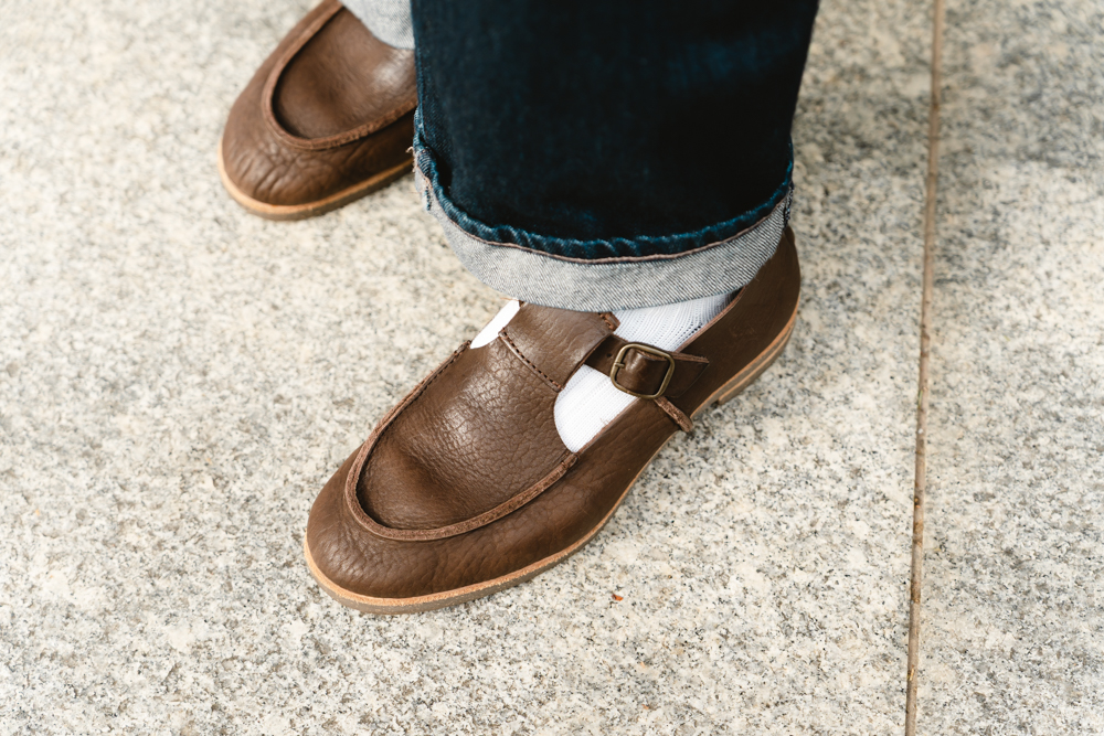 足元を飾るのは、お母様からおすすめされたというブランド《U.No.5》のTストラップモカシン。一枚革で仕立てられたこの靴は、半年ほど履き込み、RANさんの足にすっかり馴染んでいるそう。長野県で生活を送る彼女が今欲しいものは冬用の温かいブーツ。日常を慈しむようなセンスが、トラッドなアイテムを自分らしく着こなす鍵になっています。