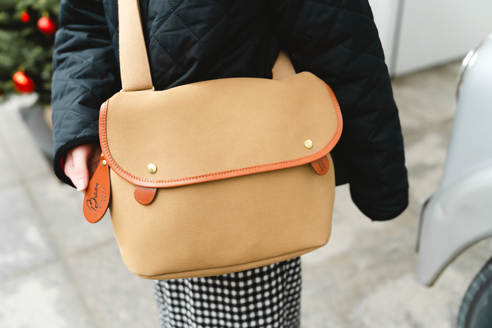 バッグは《Brady》の定番ショルダーバッグ。アウターやシューズと同様、ルーツを同じくする英国のアイテムを重ねることで、自然と統一感のあるブリティッシュスタイルの完成です。