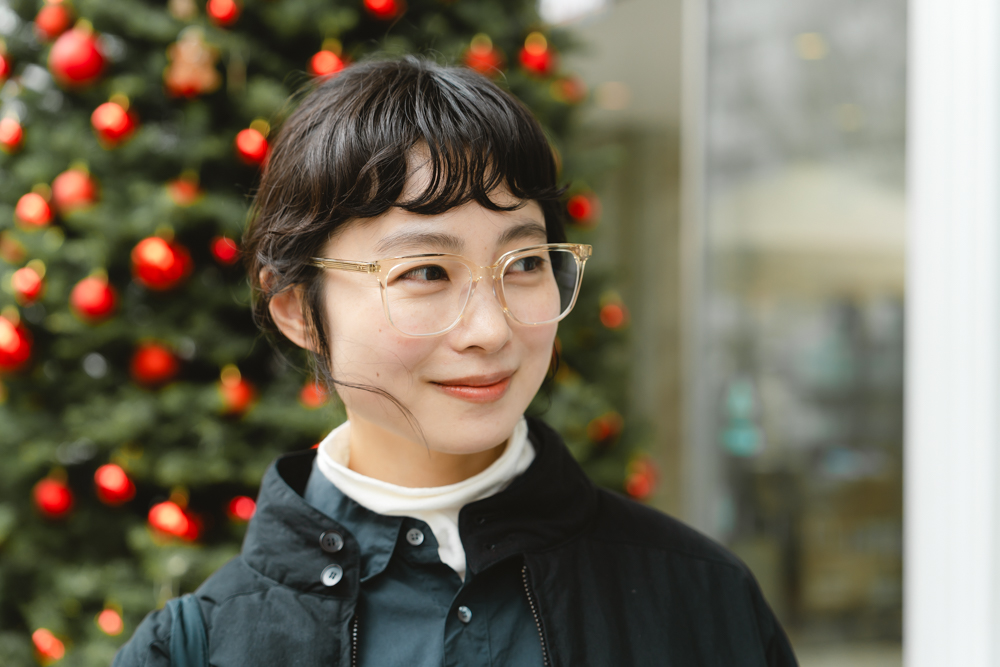 クリスマスマーケットの会場では、ニットシャツの販売としてお客様を迎えた彼女。「対面でお話ししながら、一緒にスタイリングを考えられたことが本当に嬉しかった」と、晴れやかな笑顔で語ってくれました。そんな彼女の温かな人柄が、この洗練された着こなしからも真っ直ぐに伝わってきます。
