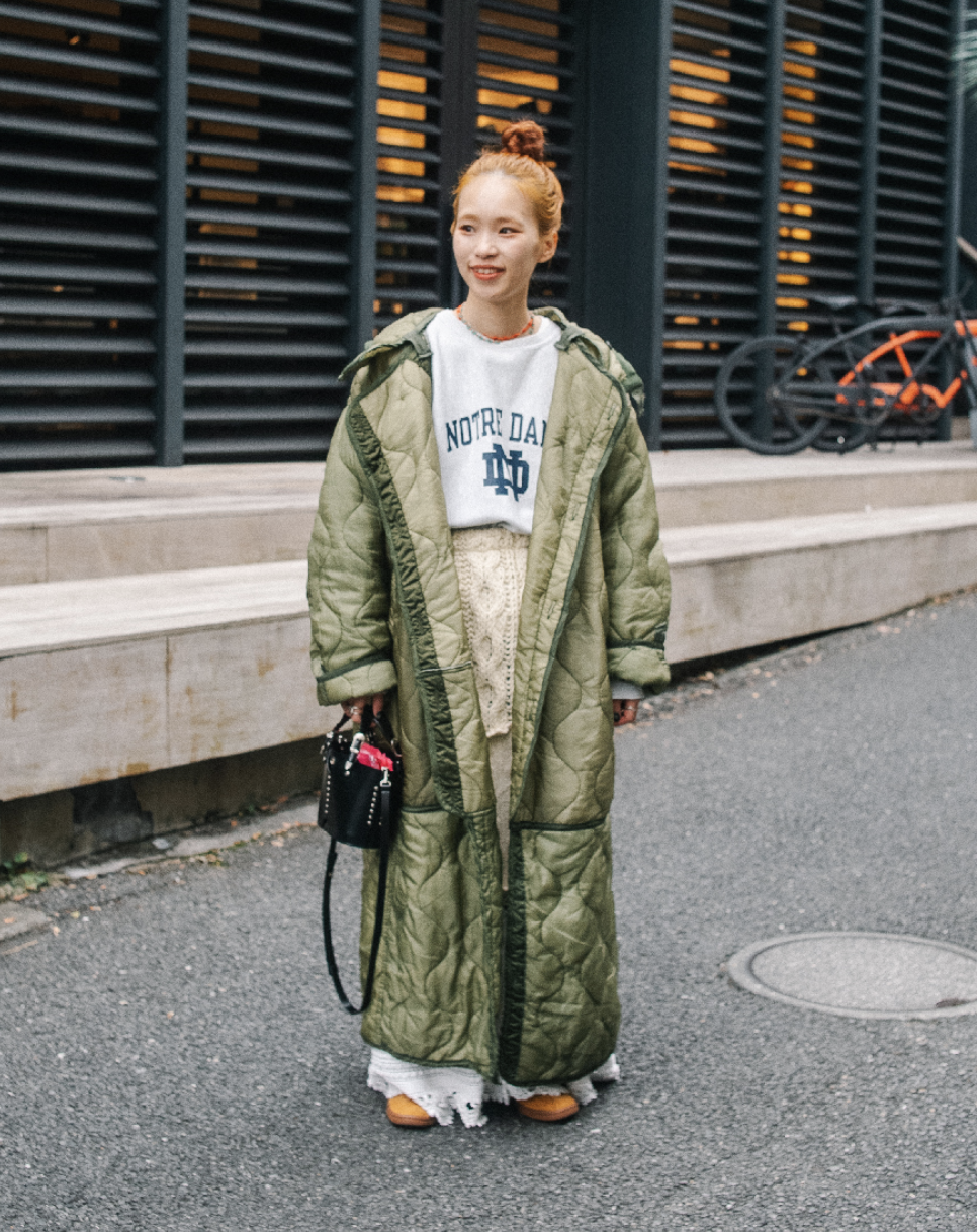 キルティングコートであったか!ミリタリー要素の中にレディの要素をプラスした古着mixコーデ。