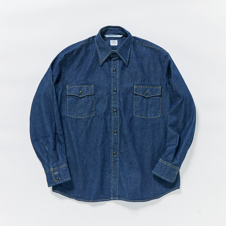 大阪生まれの《ネセサリー オア アンネセサリー》で見つけた、ラフに着られるデニムシャツ。両胸のポケットをあえて中心からずらすことによって、より力の抜けたデザインに仕上げている。