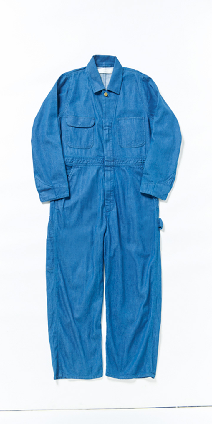 ヴィンテージモデルを思わせるオーバーシルエットのジャンプスーツは、しなやかな8oz のワンウォッシュデニムを採用。上半身を腰に巻いて楽しむラフなアレンジもおすすめ。