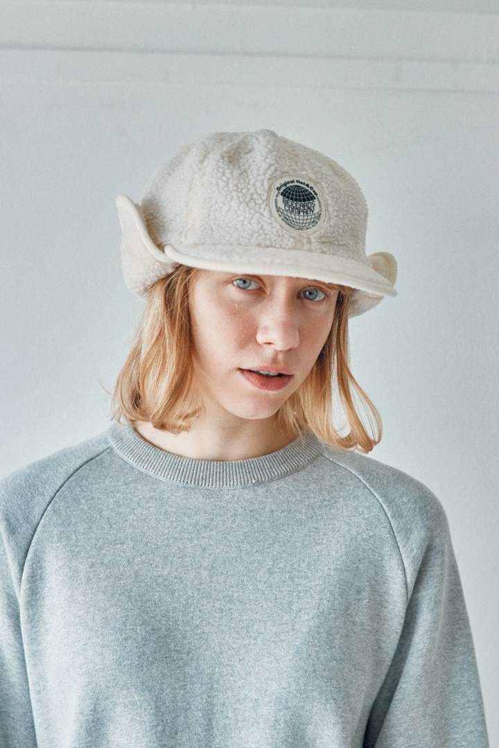 保湿性の高いアクリル性。裏ボア仕様でつけた瞬間から温かく、耳当てをつけてネックフラップをカチッとすれば、風が強くたって吹き飛ぶ心配なし。