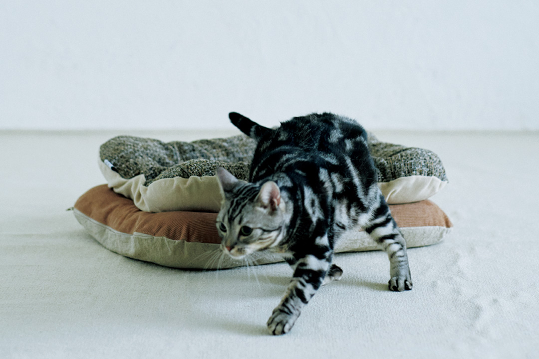 ベッドのフチは盛り上がり、アゴをのせやすい設計のため、快適な寝心地を実現。取り外しのできるカバーは自宅での洗濯が可能なうえ、インナークッションははっ水タイプと、にゃんとも頼もしい存在。さすが、ネコさんにとって快適な商品を追求する《ネコト》のロングセラーアイテム。