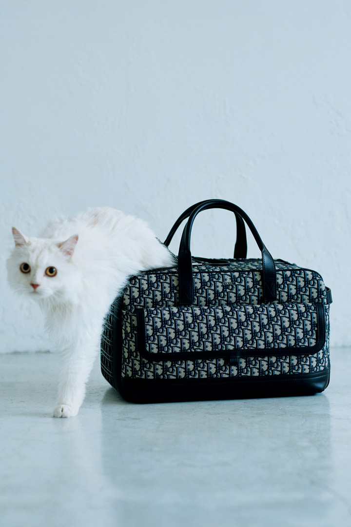 病院へ行ったり、帰省したり…… 。ネコさんには、安心して移動できるキャリーバッグが不可欠です。《ディオール》のラグジュアリーなキャリーバッグは、アイコニックなジャカードとレザーを使用。ゆったりとした開口部や通気設計に加え、取り外し可能なストラップ付きで、ネコさんも飼い主さんも心地よく移動ができそうです。