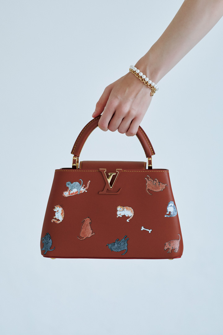 ファッションアイコンでありアーティスト、そしてアメリカ版『ヴォーグ』の元クリエイティブ・ディレクターであるグレース・コディントンによる「トラベル ウィズ」コレクション。無類のネコ好きである彼女が描いたネコ(とイヌ)たちが、アイコンバッグ「カプシーヌ」で戯れる、見ているだけで幸せな気持ちになれる特別なデザイン。