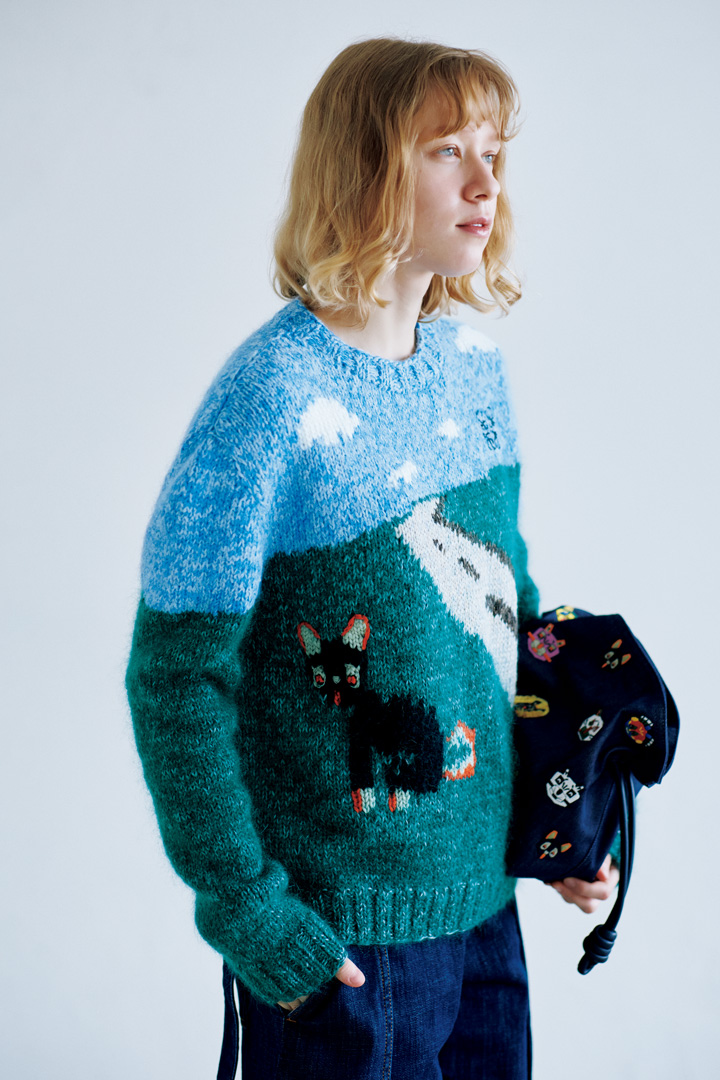 セーター¥375100、デニムパンツ¥196900、バッグ¥486200 /以上すべてLOEWE(ロエベ ジャパン クライアントサービス)
