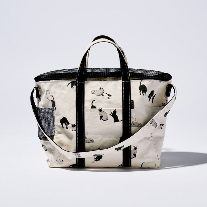 ネコとの暮らしに寄り添う《アンドキャット》と、バッグブランド《テンベア》のコラボレーションバッグ。片側の側面と上部にメッシュ素材を配し、通気性と視認性を両立。