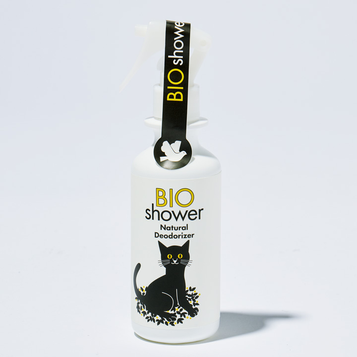 ペットにも環境にもやさしいナチュラル消臭スプレー。酵素の力で汚れとニオイを分解するビオシャワーは、無臭、無着色、無添加。お風呂嫌いなネコさんのシャンプー代わりや、トイレ後のお尻ふき、綿棒につけて耳掃除など、多用途で活躍。